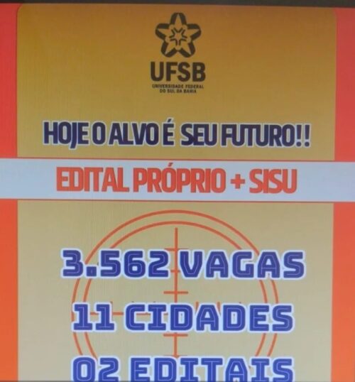 A UFSB publicou o edital que regulamenta o Processo Seletivo para Ingresso em Cursos de Graduação no período letivo 2026.1, com a oferta de 1.243 vagas, distribuídas nos municípios de Coaraci, Eunápolis, Helvécia, Ibicaraí, Ilhéus, Itabuna, Medeiros Neto, Porto Seguro, Posto da Mata, Santa Cruz Cabrália e Teixeira de Freitas.