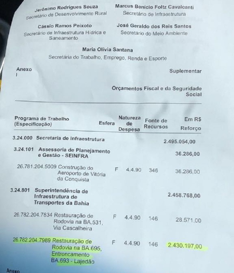 O prefeito Betão anuncia mais uma grande obra para a cidade de Lajedão. Incansável na busca por melhores condições de vida para os seus munícipes, Betão conseguiu a aprovação do projeto de restauração do pavimento asfáltico da BA 695, que liga o trevo de Ibirapuã à Lajedão e entroncamento da BA 693. A obra está estimada em R$ 2.430.197,00 (dois milhões quatrocentos e trinta mil e cento e noventa e sete reais).