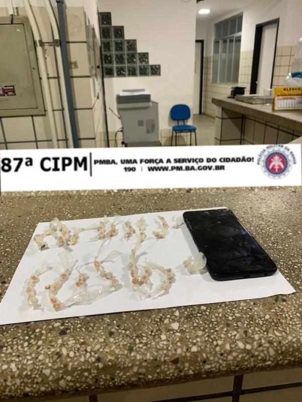 A droga e o celular foram apresentados na Delegacia de Polícia de Teixeira de Freitas.
