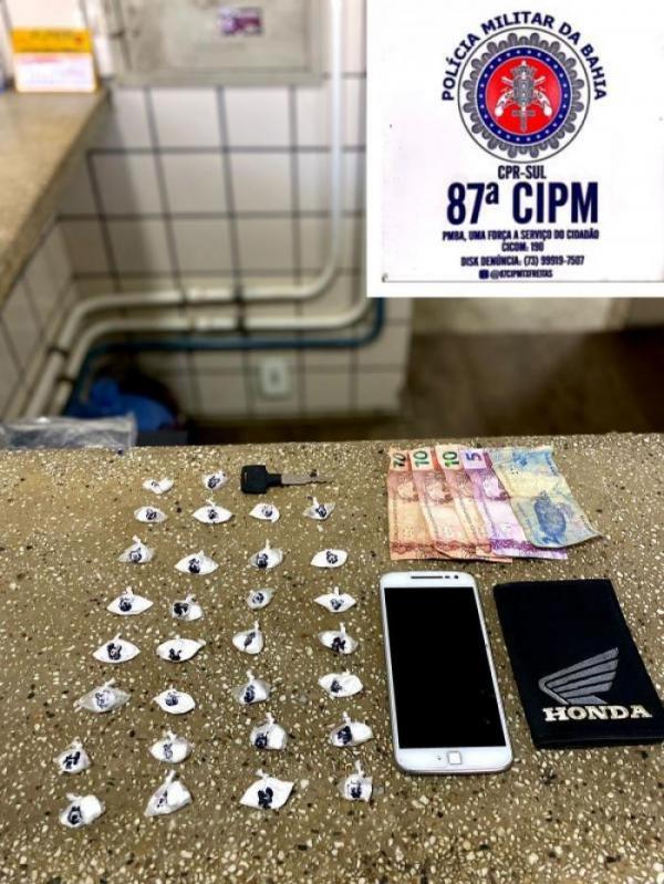 A 87ª Companhia Independente da Polícia Militar (CIPM) prendeu na tarde desta sexta-feira (17), um homem de 18 anos por tráfico de drogas na Praça Joana Angélica, no bairro São José, em Teixeira de Freitas.