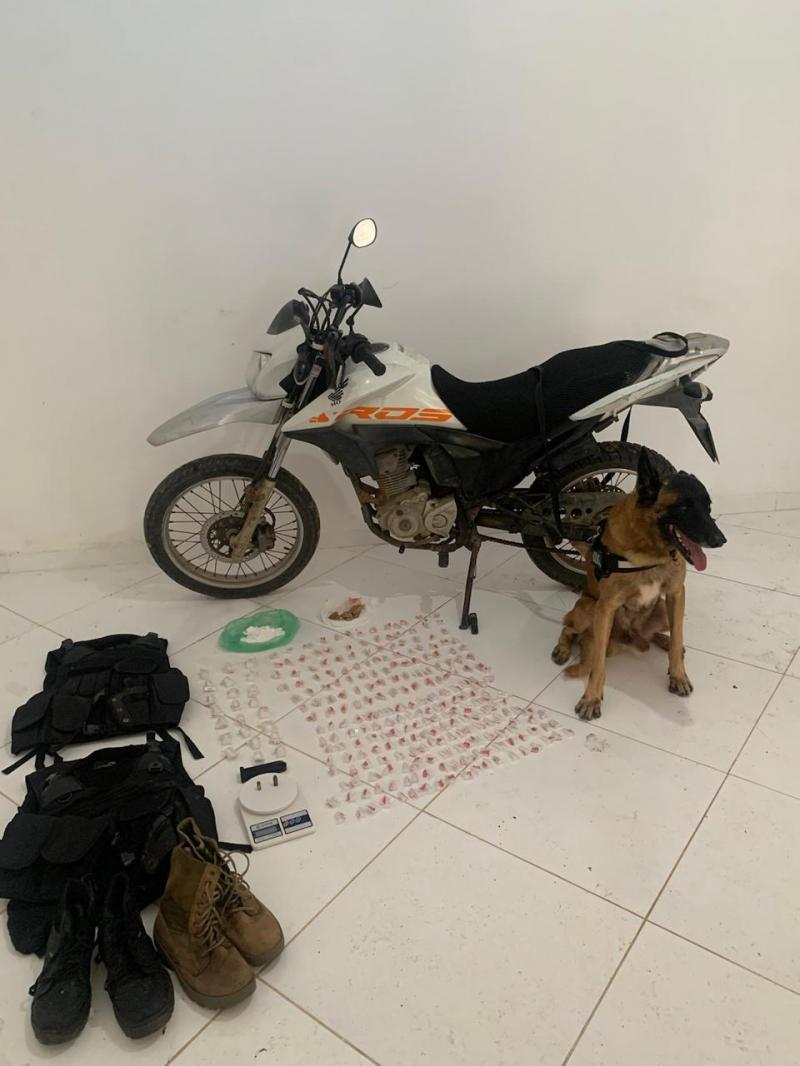 Durante as buscas, foram apreendidos 190 pinos de cocaína, 99 pinos de crack, munições de calibres variados, um carregador de pistola, capas de coletes balísticos, botas tipo coturno, uma balança de precisão, além de embalagens utilizadas para fracionamento das drogas. No local, também foi recuperada uma motocicleta Honda Bros de cor branca, roubada na cidade de São Mateus (ES) e que, segundo as investigações, estaria sendo utilizada em atividades criminosas.
