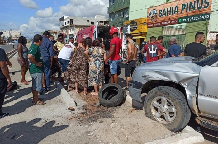 Teixeira de Freitas: Um acidente no início da tarde deste domingo, 26 de junho, deixou duas pessoas feridas na Avenida Presidente Getúlio Vargas, em Teixeira de Freitas. Uma caminhonete e uma moto acabaram se envolvendo em uma colisão na rotatória próximo à Unidade de Pronto Atendimento (UPA).