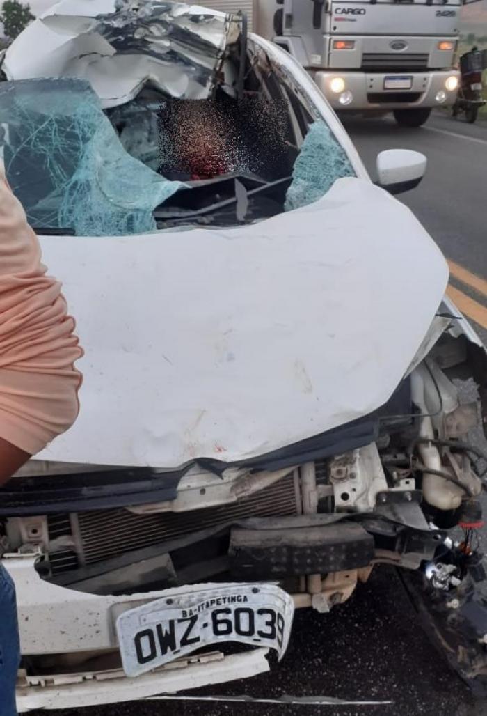 Uma colisão entre um Voyage, de cor branca, placa policial OWZ-6039, licenciado em Itapetinga-BA e um cavalo solto na rodovia na manhã desta terça-feira, 29 de junho, na BA 415 trecho que Itororó a Itapetinga, deixou uma pessoa morta e três feridos.