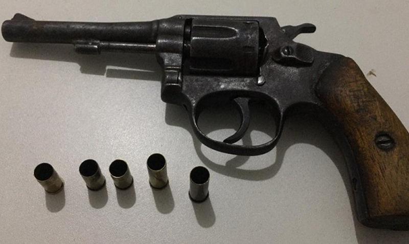 O suspeito Jônatas Santos Guimarães, o Risadinha, 18 anos, que estava com um revólver calibre .32, com 5 cartuchos deflagrados.