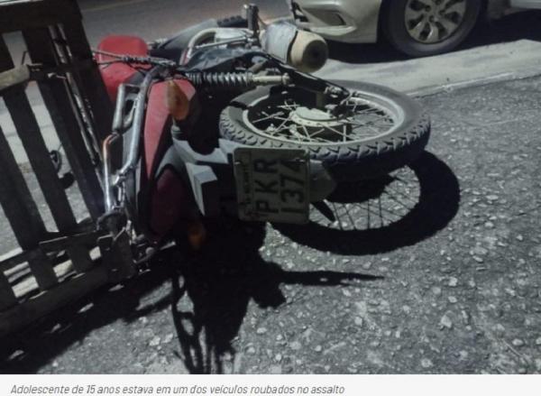 O segundo assaltante, maior de idade, colidiu com o carro contra um obstáculo e acabou preso. Os demais criminosos conseguiram fugir pela vegetação. Segundo a polícia, o adolescente de 15 anos confessou ter se desfeito da arma, arremessando-a contra a vegetação, após cair da moto.