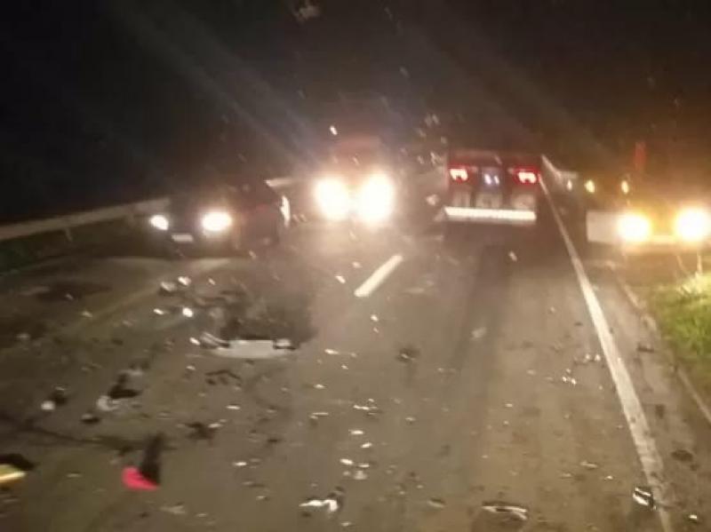 A colisão foi tão violenta que pedaços dos carros envolvidos ficaram espalhados pela rodovia.