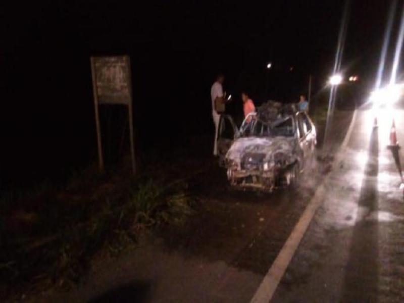 Um Fiat/Palio pegou fogo próximo a Posto da Mata, distrito de Nova Viçosa, na noite de sexta-feira, 28 de fevereiro.
