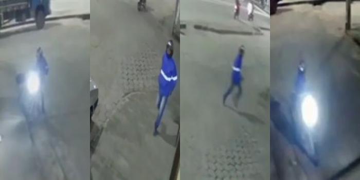 O atirador de blusão azul, calça jeans e capacete preto, deixa a moto na lateral da via, retorna correndo após realizar os disparos e foge sentido a Rua Teixeira de Freitas.