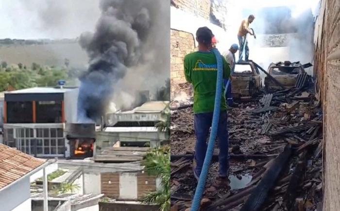 Cinco veículos são destruídos em incêndio no interior de oficina mecânica na Cidade Baixa em Itamaraju