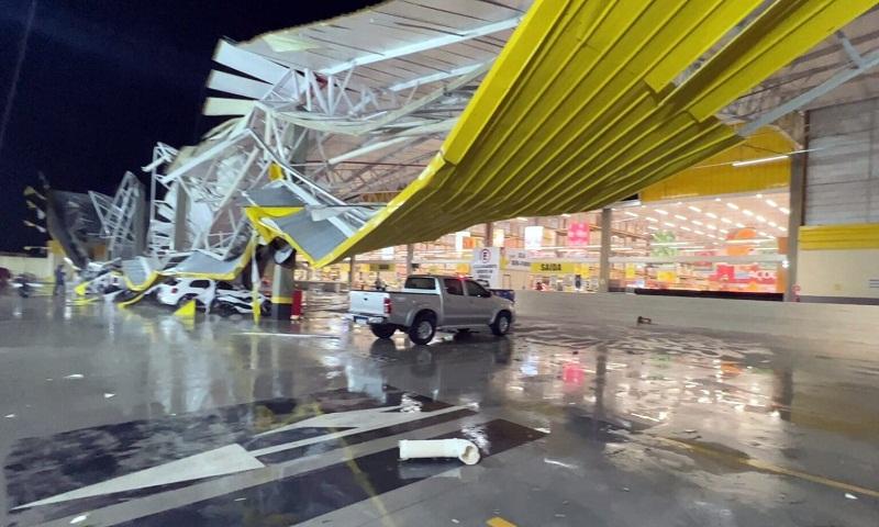 No bairro Pequi, parte da estrutura do estacionamento do hipermercado Mineirão, inaugurado há menos de dois meses, desabou com a força dos ventos. Colunas de concreto que davam sustentação à cobertura ficaram retorcidas.