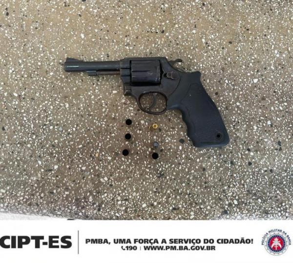 Foram apreendidos, 01 Revólver cal.38, 4 munições deflagradas, 1 picotada e 1 intacta.