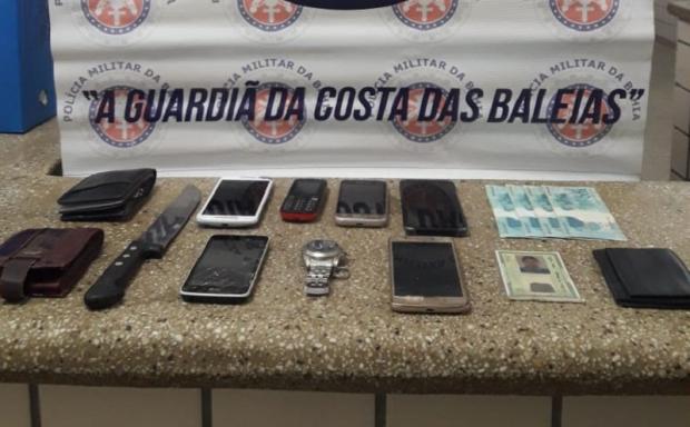 Os acusados foram identificados como Ailton de Araújo Vital Filho, 19 anos, que já tem passagem por porte ilegal de arma de fogo; Moabi Tavares Inácio, 18 anos; Joabe Oliveira da Conceição, 18 anos, e um Adolescente de 16 anos. Com eles foram encontrado uma faca, seis aparelhos celulares, alguns objetos pessoais das vítimas, e o valor em espécie de R$ 400,00 (quatrocentos reais). Eles foram conduzidos e apresentados na Sede da 8ª COORPIN em Teixeira de Freitas, para delegada plantonista, Maria Luíza Ribeiro.