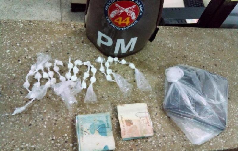Na sequência, os policiais prenderam Bruno Barbosa Pino, de 27 anos, que foi surpreendido no fundo de uma residência tentando descartar as drogas. Após evitar o descarte, foi encontrado o restante dos entorpecentes utilizados para o tráfico, sendo 35 (trinta e cinco) porções de cocaína, pesando 27 (vinte e sete) gramas; 02 (dois) aparelhos celulares e a quantia de 720,00 (setecentos e vinte) reais em dinheiro.