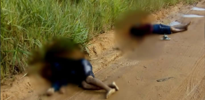 Conforme as imagens, as vítimas estavam caídas na beira da estrada, com diversas perfurações de arma de fogo. No local havia estojos de pistola.