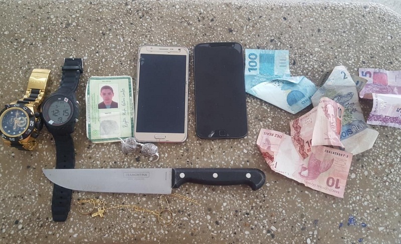 O criminoso subtraiu dinheiro e outros pertences da vítima, e ao pedir o aparelho celular, e com a possível demora na entrega o criminoso desferiu 2 golpes com a faca contra a vítima.