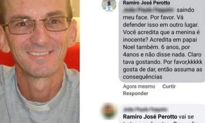 Um padre gerou polêmica na internet por fazer postagens com ataques contra a menina de 10 anos estuprada pelo tio, no Espírito Santo. Pelo Facebook, Ramiro Perotto escreveu que a criança “gosta de dar” e não é “inocente”, por ter aturado os abusos durante quatro anos.