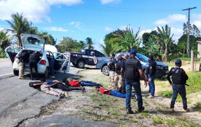 FORAGIDO PRESO – Cinco pessoas estavam no veículo abordado pela polícia na BR-101. O veículo havia saído de Ribeirão das Neves (MG) com destino a Itabela. Além dos jovens, de 19 e 20 anos, também foi preso Dhonis dos Santos Silva, de 22 anos, que tinha mandado de prisão temporária, expedido pela Comarca de Itabela pelo crime de homicídio.