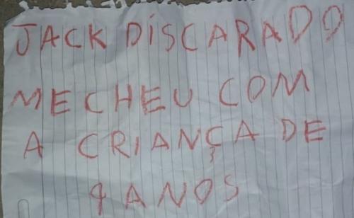 Segundo a polícia, a vítima apresentava disparos de revólver na região do tórax e um tiro de espingarda calibre 12 na nuca. Debaixo do braço dele havia um bilhete dobrado, com uma mensagem sugerindo que a execução estaria ligada a uma acusação de estupro de uma criança de quatro anos.