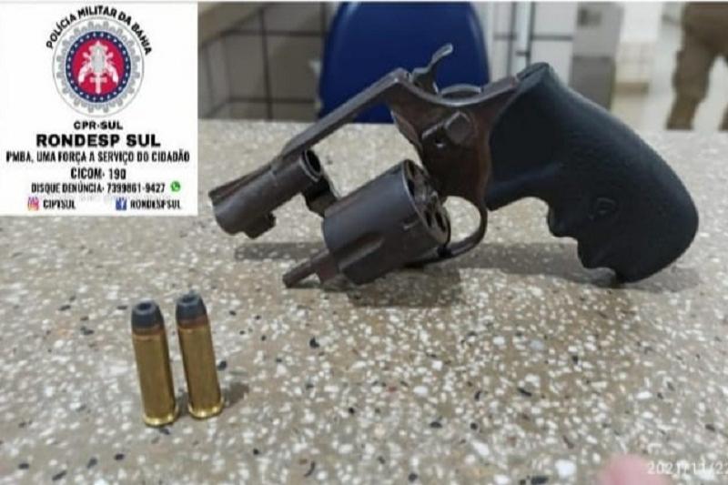 Policiais militares da 87ª CIPM se uniram na ação e os suspeitos foram alcançados, abordados e presos. Na abordagem, os policiais encontraram uma arma de fogo na cintura do carona, sendo 01 revólver calibre .38, marca Rossi, com 02 (duas) munições e com a numeração suprimida.