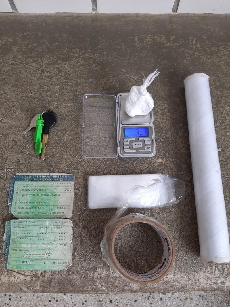 Por volta das 11h40 deste sábado, 25 de julho, uma guarnição da Companhia Independente de Policiamento Especializado (CIPE/Mata Atlântica) em rondas preventivas pela cidade de Teixeira de Freitas avistou um elemento em atitude suspeita, o qual saía de uma casa em uma motocicleta na rua Dom Pedro II, nº 328, Centro, e ao avistar a guarnição entrou em um beco e jogou um pacote por cima de um muro.