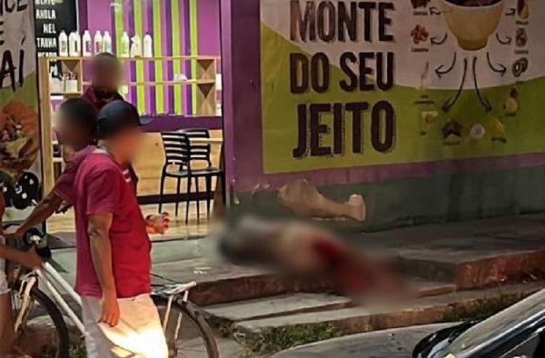 CASO INTRIGANTE – Vídeos capturados por moradores e que circulam online retratam a vítima caída na calçada de uma lanchonete, próxima à Praça da Caixa d’Água, na noite de quinta-feira (10), apresentando ferimentos visíveis provenientes de arma de fogo.