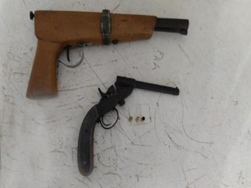 Durante abordagem, foram encontradas: uma arma de fogo calibre 22 municiada e outra arma de fabricação caseira.