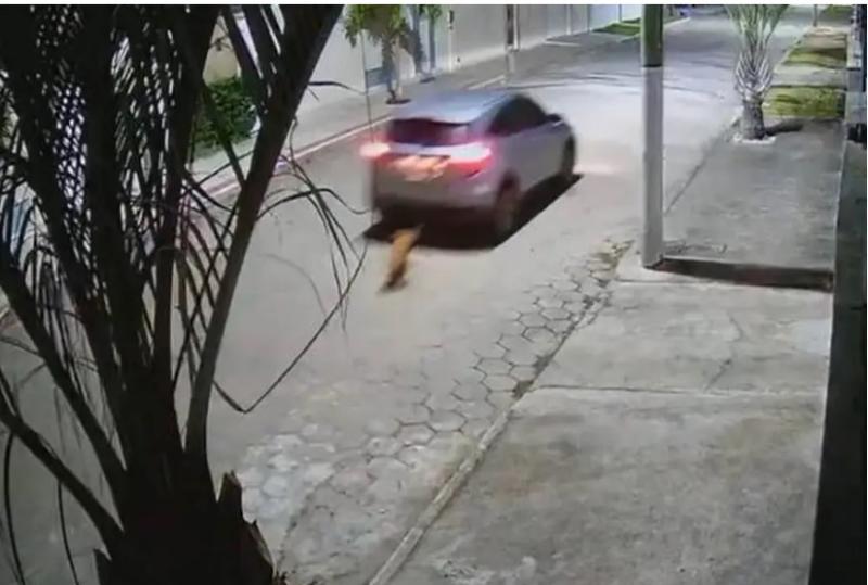 Após arrastar o cãozinho pelas ruas, o agressor parou o carro, desamarrou e ainda o empurrou para próximo a uma calçada com o pé.