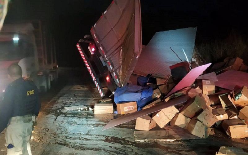Segundo a Polícia Rodoviária Federal, o condutor suspeita que os freios do veículo falharam em uma descida. O profissional foi levado para o Hospital Regional com suspeita de fratura em uma perna.