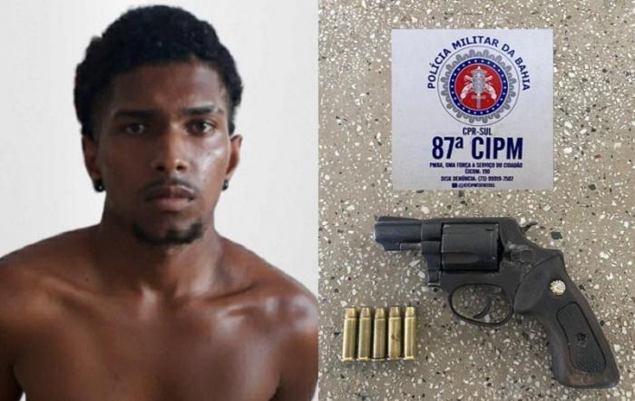 Teixeira de Freitas: A prisão aconteceu na tarde deste domingo, 20 de fevereiro, por volta das 15h30, na Rua Olindina, no Bairro Liberdade, em Teixeira de Freitas, após uma abordagem realizada por policiais militares na quadra do Bairro Liberdade . O suspeito, ao perceber a aproximação da viatura, dispensou uma arma de fogo, jogando-a no chão, sendo 01 revólver marca Taurus, calibre 38, com a numeração suprimida (raspada).