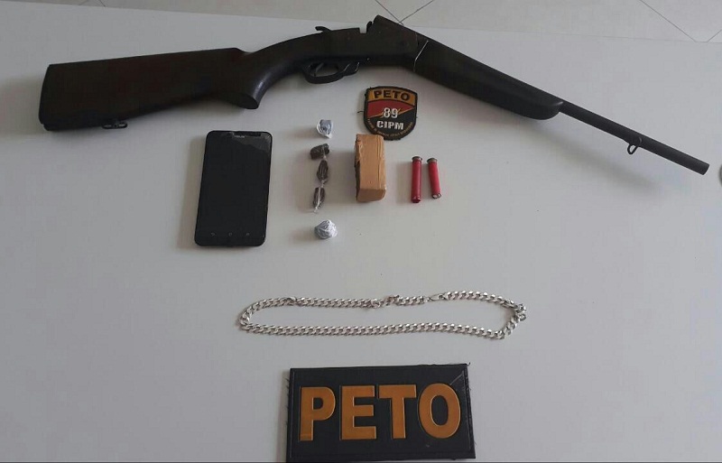 Jovem é preso pelo PETO com drogas e espingarda no Centro