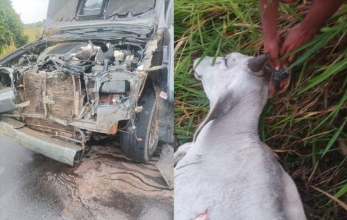 Mais um acidente na BA-418 em Caravelas: Dois bois morrem após colisão com veículo de delegado