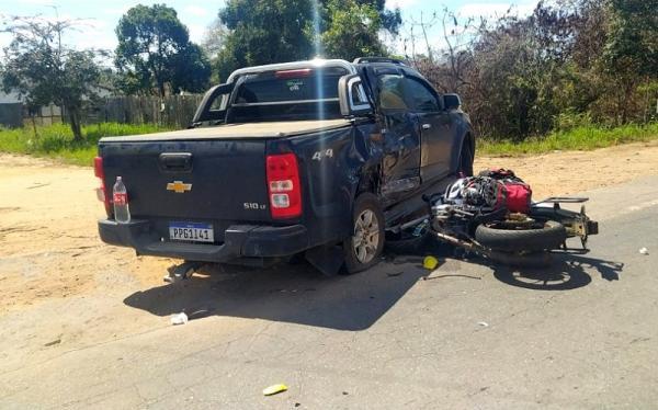 Motociclista fica gravemente ferido em acidente com caminhonete na BR 101 em Posto da Mata e é socorrido ao HMTF