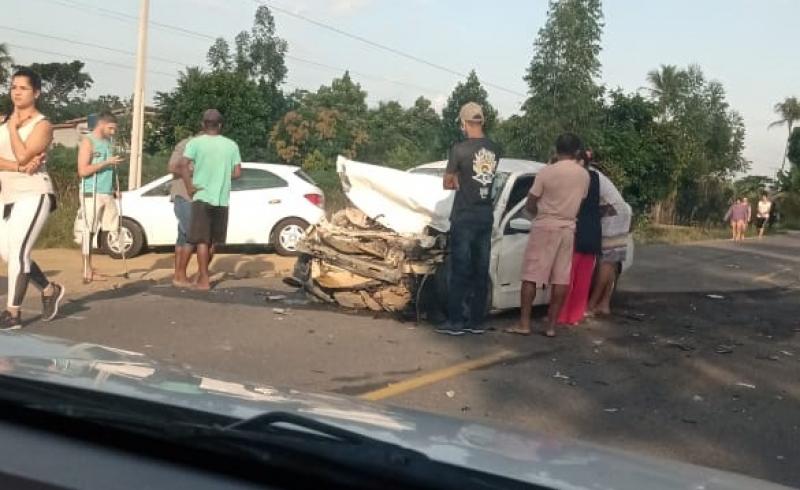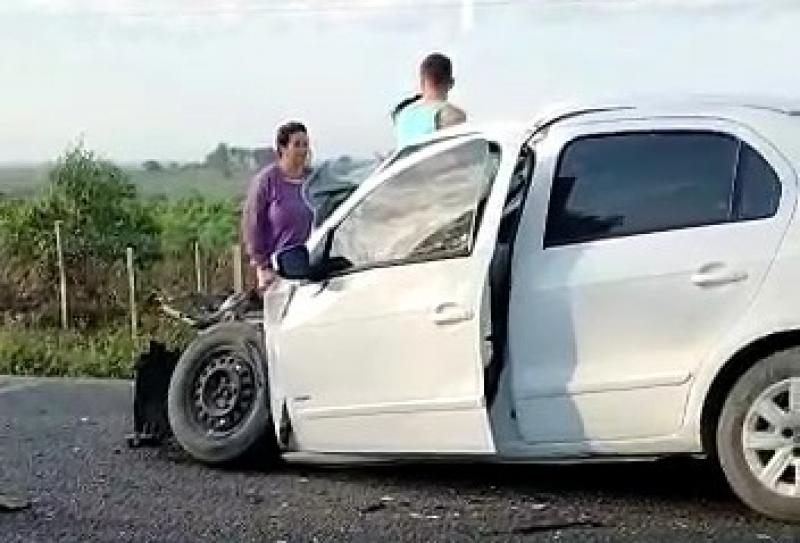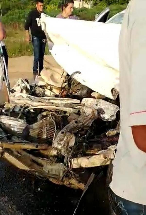Com o forte impacto a frente do carro ficou totalmente destruído. Guiomar era prima das ex-vereadoras de Alcobaça Terezão e Vilma.