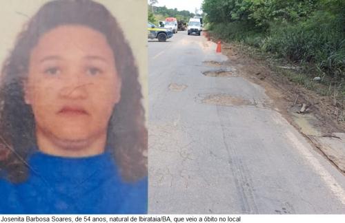 Mulher morre e dois ficam feridos em grave acidente ocorrido na BR-101, entre Posto da Mata e Itabatã; buraco na pista provocou a tragédia