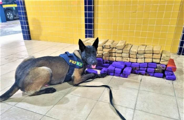 Ao subirem no ônibus e dialogarem com passageiros, os policiais vistoriaram o compartimento de bagagem. O cão K9 Umbro deu o sinal para que os policiais encontrassem, dentro de duas malas, os tabletes de maconha. Foram apreendidos ao todo 69,70 Kg (sessenta e nove quilos e setecentas gramas) da droga.