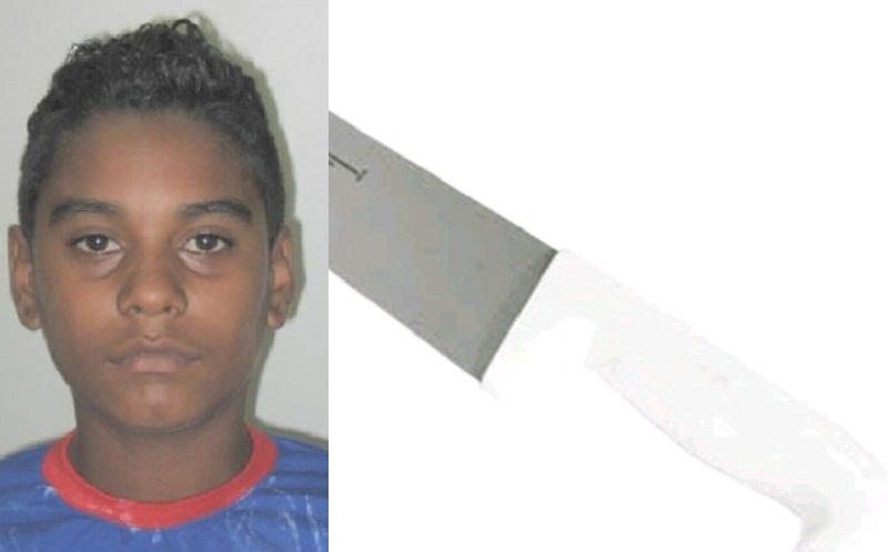 Elizeu Damascena Pereira (18 anos), autor da tentativa de homicídio/ faca utilizada para cometer o crime
