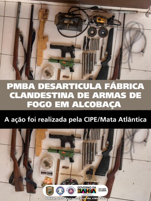 Uma operação integrada das forças de segurança resultou na descoberta de uma oficina clandestina de fabricação de armas de fogo e na prisão de três indivíduos na manhã da última quinta-feira (19), no município de Alcobaça, no extremo sul do estado.