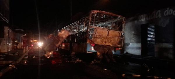 Um ônibus da Viação Santa Clara, que fazia a linha Liberdade/Nova América, ficou totalmente destruído pelas chamas na noite desta quinta-feira, 18 de maio, em Teixeira de Freitas.