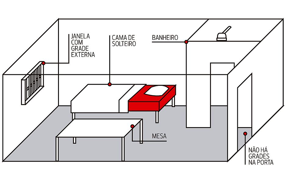O alojamento fica no último andar do edifício, que tem área menor do que os demais e está abaixo do heliponto. O andar é usado pelo Núcleo de Inteligência Policial, que lida com dados sensíveis de investigações.