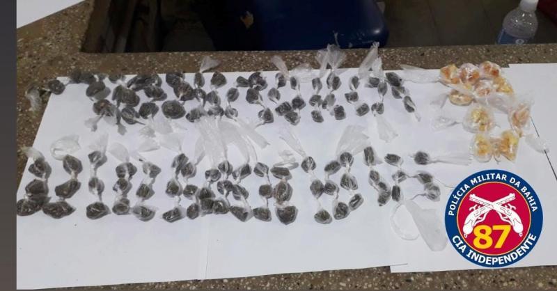 A Polícia Militar apreendeu 70 pedras de crack, pesando 35 gramas, e 106 papelotes de maconha, 90 gramas, no final da tarde desta quarta-feira (20), na cidade de Teixeira de Freitas.