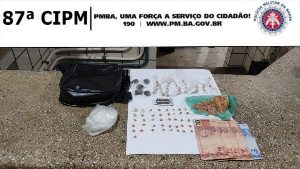 Uma guarnição da 87ª Companhia Independente de Polícia Militar apreendeu drogas na Rua João Paulo I, no bairro Irmã Dulce, em Teixeira de Freitas.
