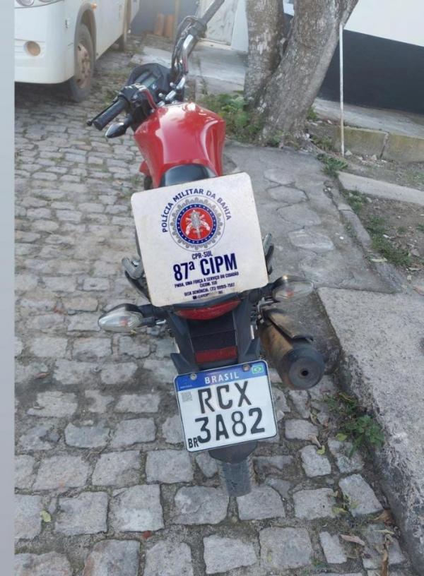 Policiais da 87ª Companhia Independente de Polícia Militar apreenderam uma motocicleta no Bairro Ulisses Guimarães, na cidade de Teixeira de Freitas, na noite deste sábado (23).