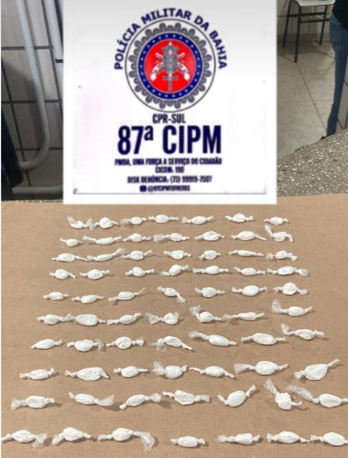 A Polícia Militar apreendeu 70 papelotes de cocaína no final da manhã desta segunda-feira (16), na cidade de Teixeira de Freitas.