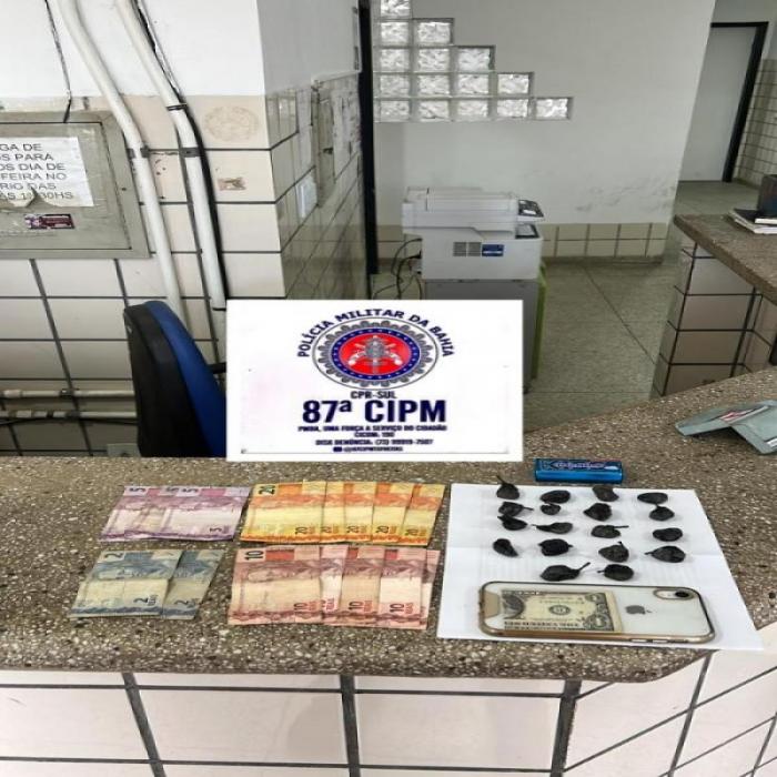 Ele foi abordado por policiais da 87ª Companhia Independente de Polícia Militar na Rua Jerusalém Celeste, no Bairro Bela Vista, na cidade de Teixeira de Freitas.