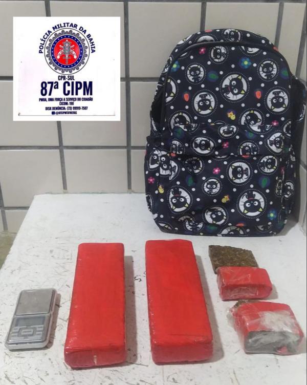 Policiais da 87ª Companhia Independente de Polícia Militar apreenderam quase dois quilos de maconha na noite deste sábado (25), na cidade de Teixeira de Freitas.