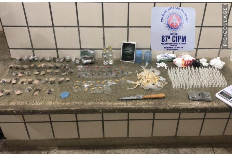A PM apreendeu 51 papelotes de maconha e 16 de cocaína e 48 pedras de crack.
