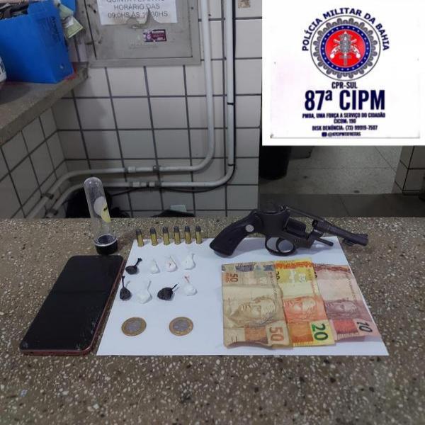 O segundo suspeito foi abordado às 12h20, na Avenida Gonçalves Lêdo, no Bairro Bela Vista. Com ele, os policiais encontraram um revólver calibre .32 com seis munições, nove papelotes de cocaína e R$ 82.
