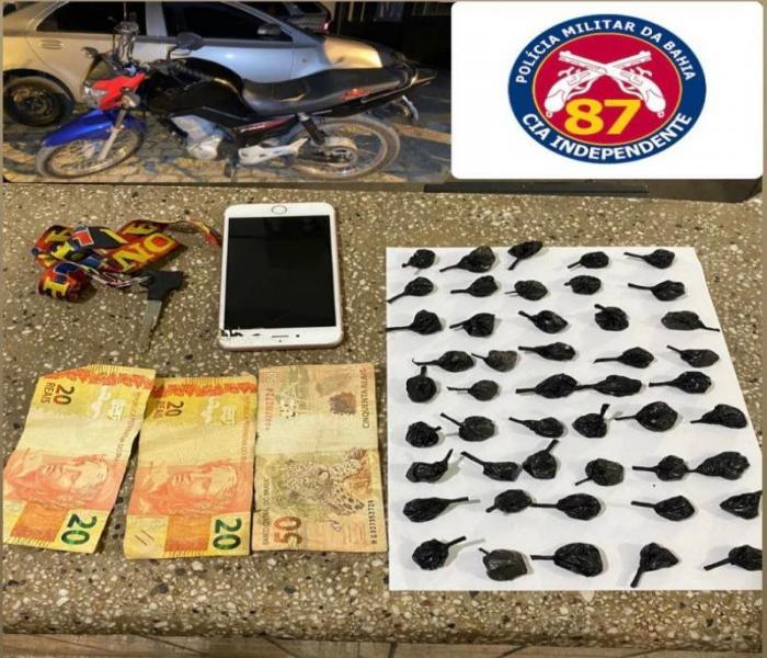 Um homem de 22 anos foi preso em flagrante pela PM na Rua Almeida Garret, na cidade de Teixeira de Freitas, suspeito de tráfico de drogas.