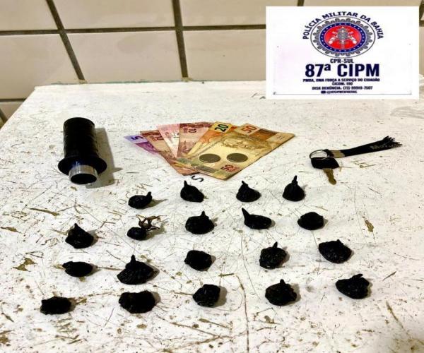 Policiais da 87ª Companhia Independente de Polícia Militar prenderam um homem no início da noite deste domingo (8), com 19 papelotes de cocaína, na cidade de Teixeira de Freitas. Ele ainda estava com R$ 100, que foi apreendido.