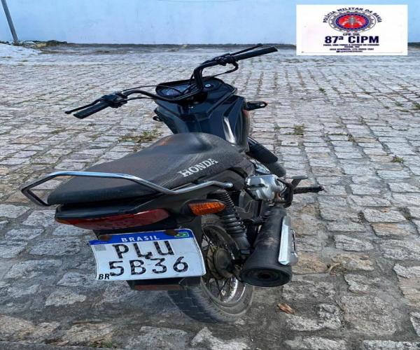 A ação foi na Rua José Militão Guerra, no Bairro Luiz Eduardo Magalhães, quando a PM avistou o suspeito empurrando a motocicleta Pop 110, cor preta, placa PLU 5B36.